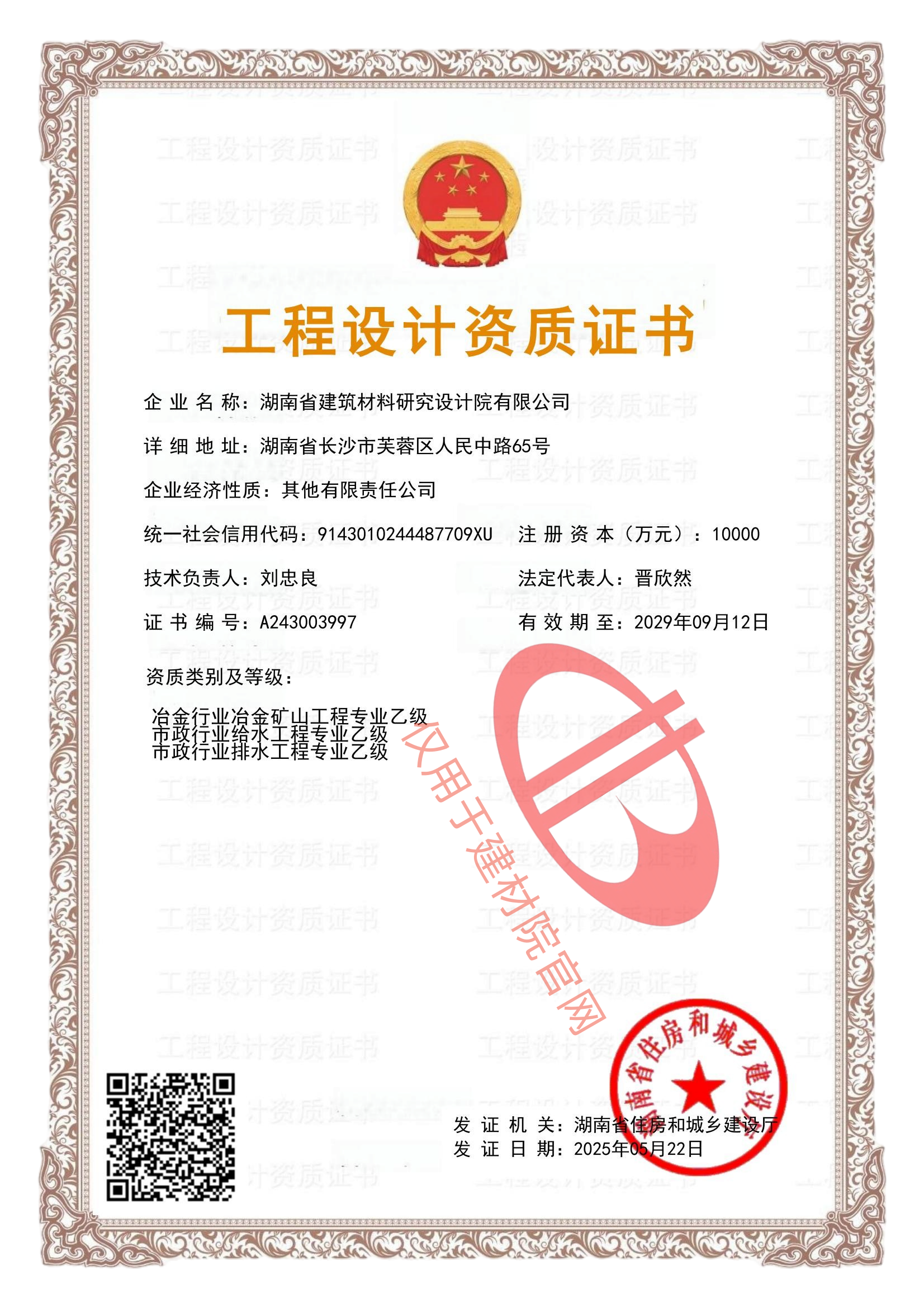 湖南省建筑材料研究設(shè)計院有限公司的前身為湖南省建筑材料研究設(shè)計院,成立于1958年,是1993年全國首批榮獲國家建材行業(yè)設(shè)計、工程總承包甲級資質(zhì)的四個科研設(shè)計單位之一。
